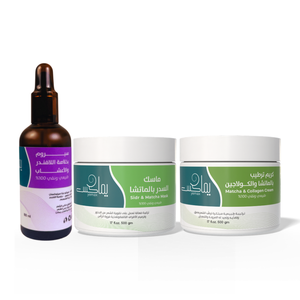 - كريم الترطيب بالماتشا والكولاجين: يمنح ترطيباً عميقاً للشعر الجاف، ويدعم مرونة الخصل ليبدو أكثر انسيابية.